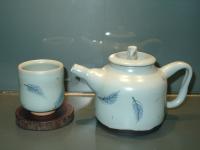 創作者:沈東寧名稱:青瓷畫花茶具組(1壺6杯)尺寸:日期:98/11/30編號:186