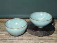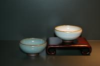 創作者:江玗名稱:青瓷與定白釉小茶杯尺寸:日期:99/01/07編號:089