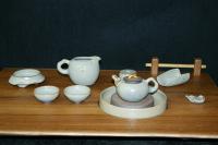 創作者:江玗名稱:器韻茶蓆(定白釉茶具組+柚木茶盤) 陶瓷茶具共11件尺寸:日期:98/11/23編號:286