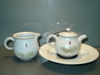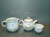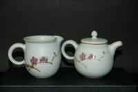 創作者:張書曜名稱:汝釉畫花茶壺與茶海尺寸:日期:99/01/14編號:038