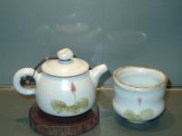 創作者:張書曜名稱:汝釉茶具組(畫荷花)尺寸:日期;98/11/28編號:198