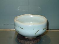 創作者:張書曜名稱:汝釉畫花茶洗尺寸:日期:99/01/14編號:044