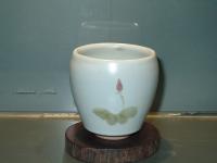 創作者:張書曜名稱:汝釉畫荷花水杯尺寸:日期:99/07/15編號:375