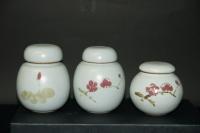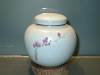 創作者:張書曜名稱:汝釉茶倉(畫梅花)尺寸:日期:98/11/28編號:204