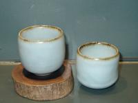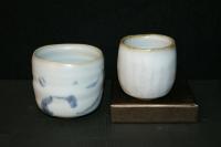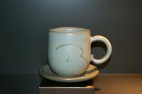 創作者:張書曜名稱:汝釉水杯(有底盤)尺寸:日期:98/11/28編號:202