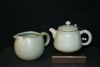 創作者:張書曜名稱:汝釉茶壺與茶海尺寸:日期:99/01/14編號:031