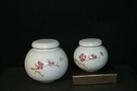 創作者:張書曜名稱:汝釉畫花茶倉尺寸:日期:99/01/14編號:032
