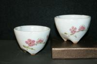 創作者:張書曜名稱:汝釉畫梅花茶杯尺寸:日期:99/07/15編號:378