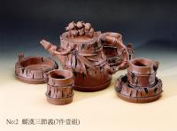創作者:葉劉金雄名稱:竹節茶具組(螺漢三節義)尺寸:日期:98/11/27編號:262