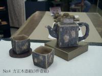 創作者:葉劉金雄名稱:樹根茶壺組(方正木壺組)尺寸:日期:98/11/27編號:264