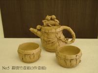 創作者:葉劉金雄名稱:竹節茶壺組(慕情竹壺)尺寸:日期:98/11/27編號:265
