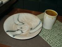 創作者:賴信杰名稱:鹽燒陶盤與水杯尺寸:日期:98/12/01編號:109