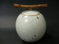 創作者:章格銘名稱:側柄壺(木柄)尺寸:日期:99/01/08編號:071